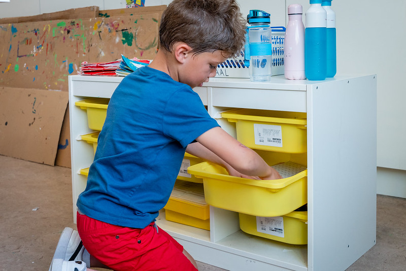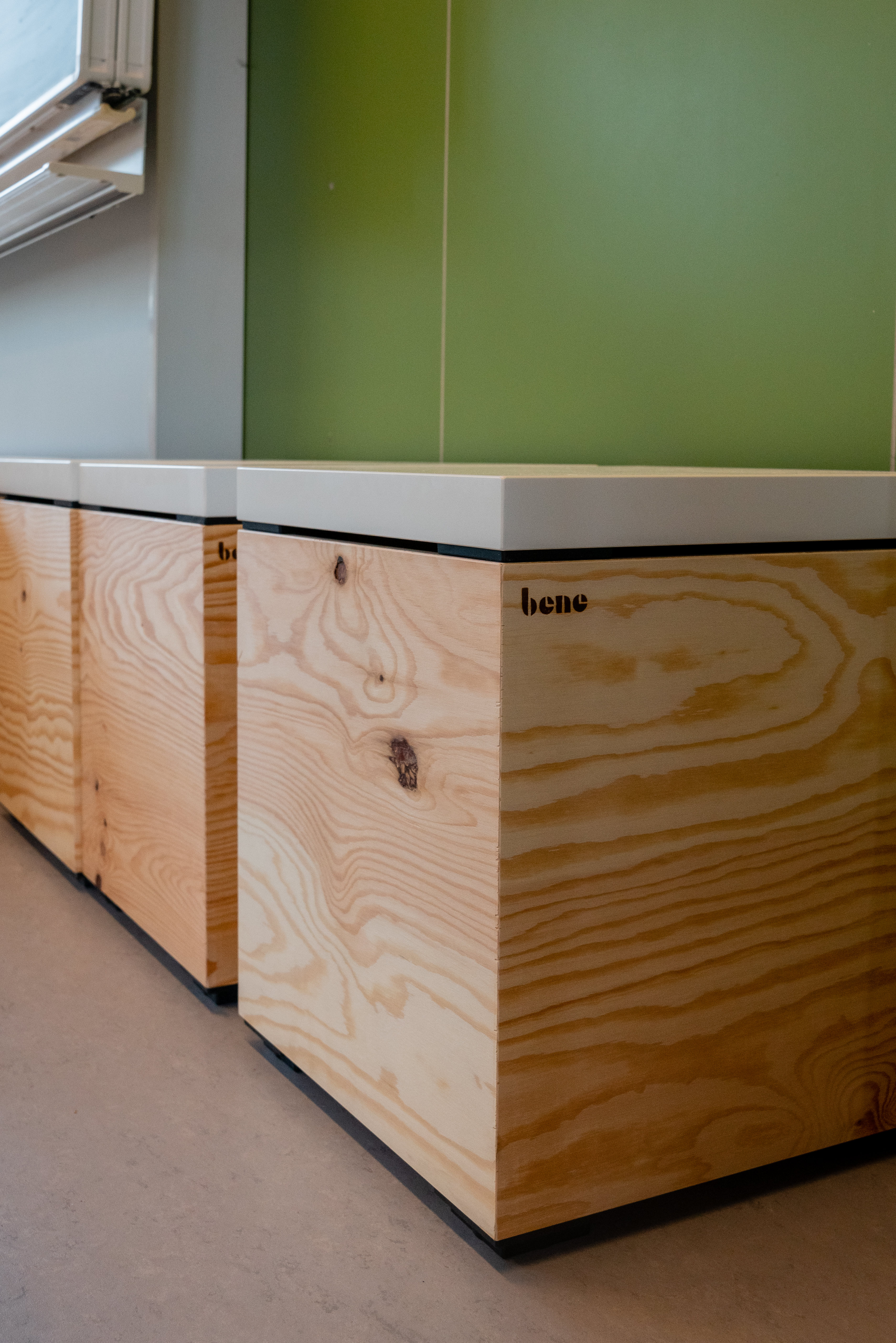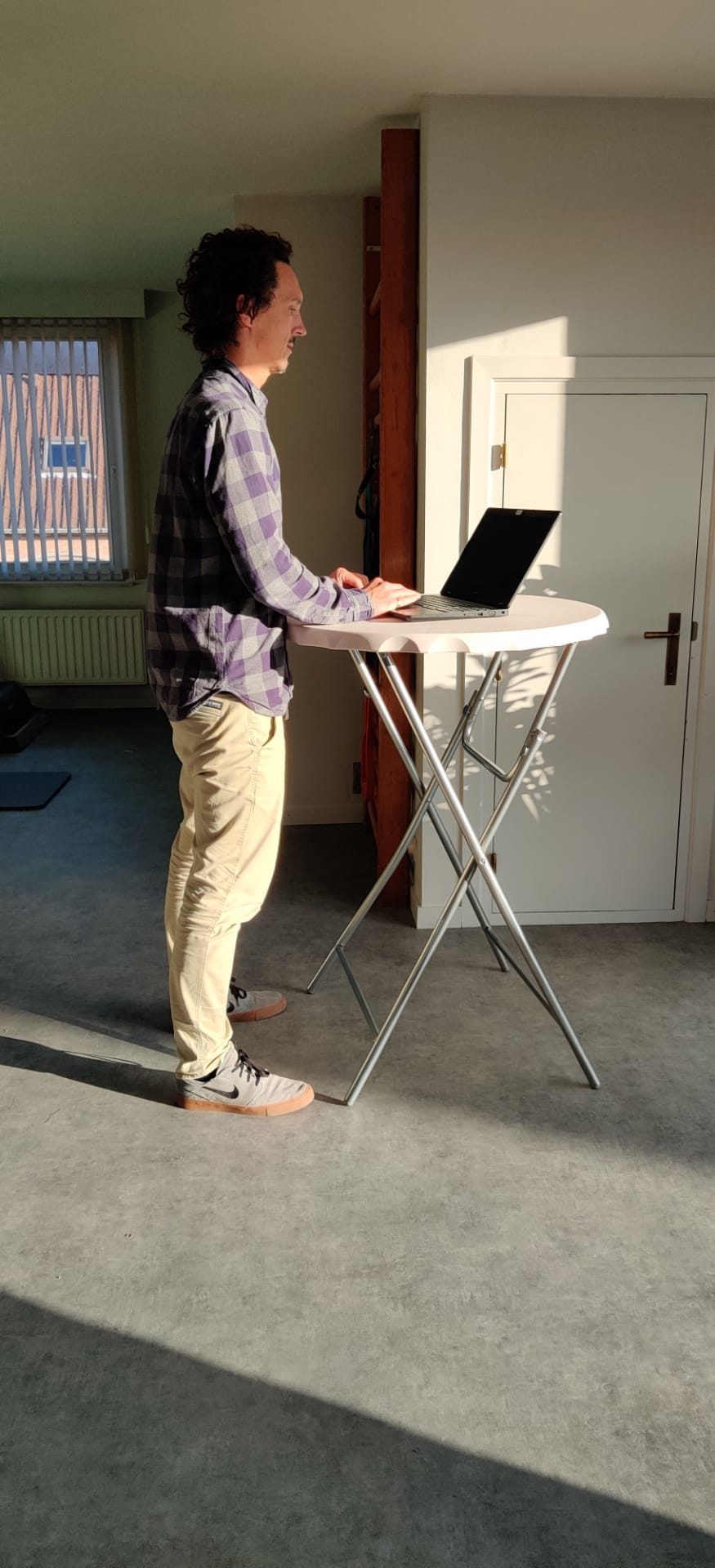 In this project, we progressively integrated sitting-standing tables into the classroom. At the start, 1 table has been added. The teachers could use it in different ways: instruction area for the whole class, to offer care to a small group, hand skills, place for correction keys, ... Another way was to have 4 students in turn work at this table. In the process, their personal belongings were stored in a chest of drawers.