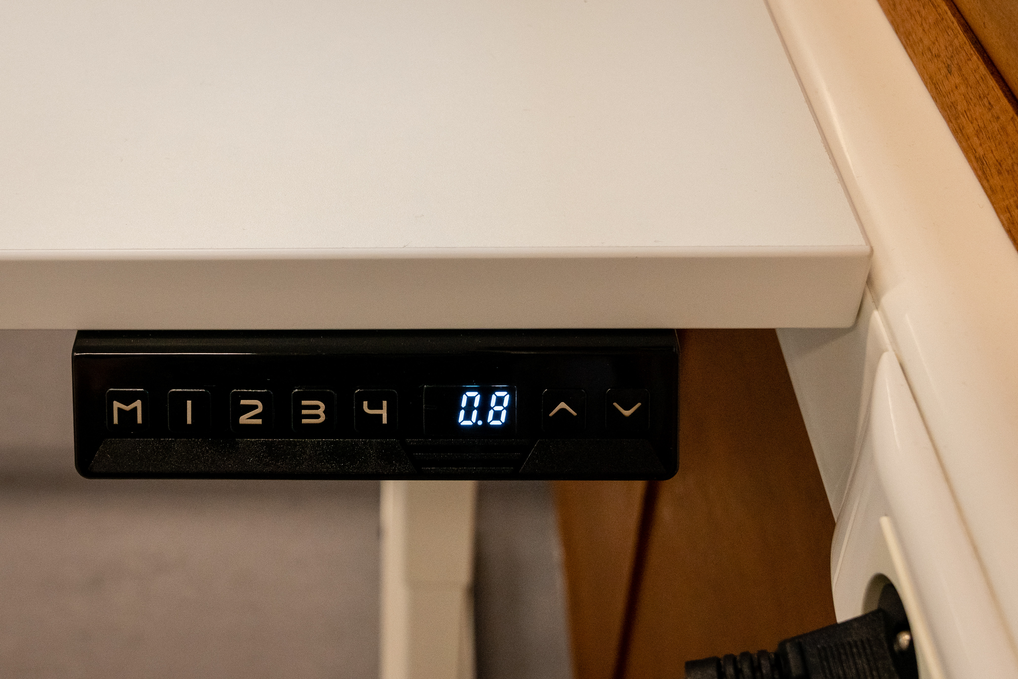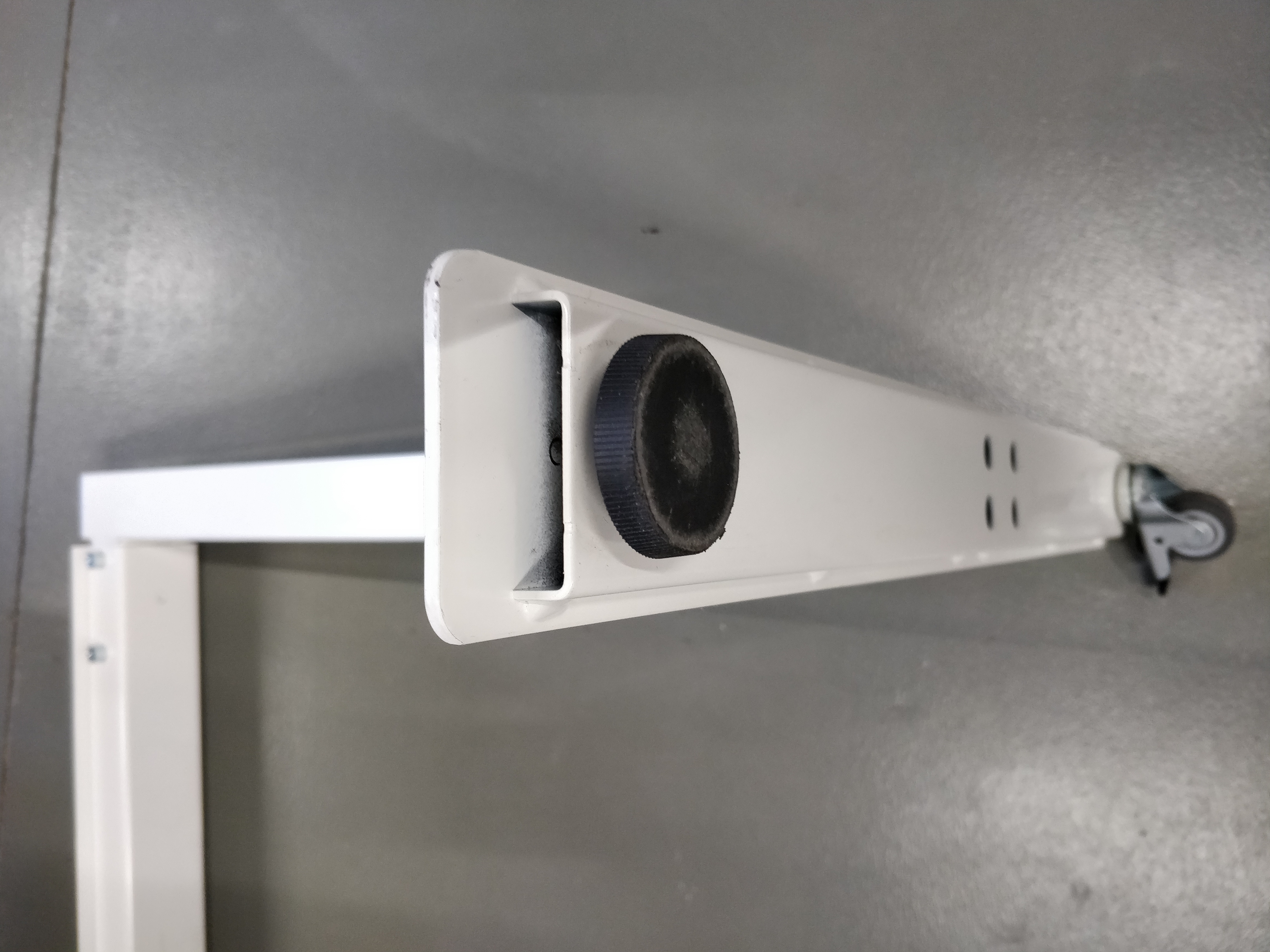 Advantage of this table: budget-friendly and height-adjustable. Disadvantage: the legs have to be screwed back in regularly.